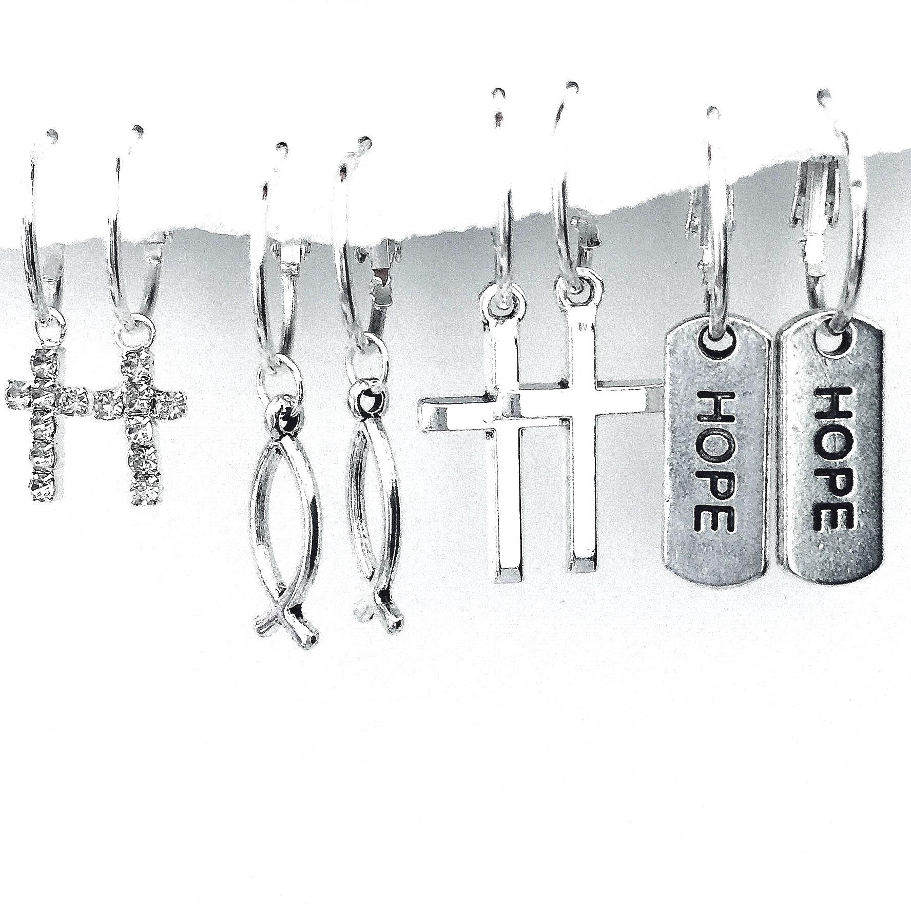 Christian Earrings, Christian charms, sparkly bling cross, reversible silver cross, fish and "hope" Hoolas slide on the hoops. Combine and you are ready to share your faith!