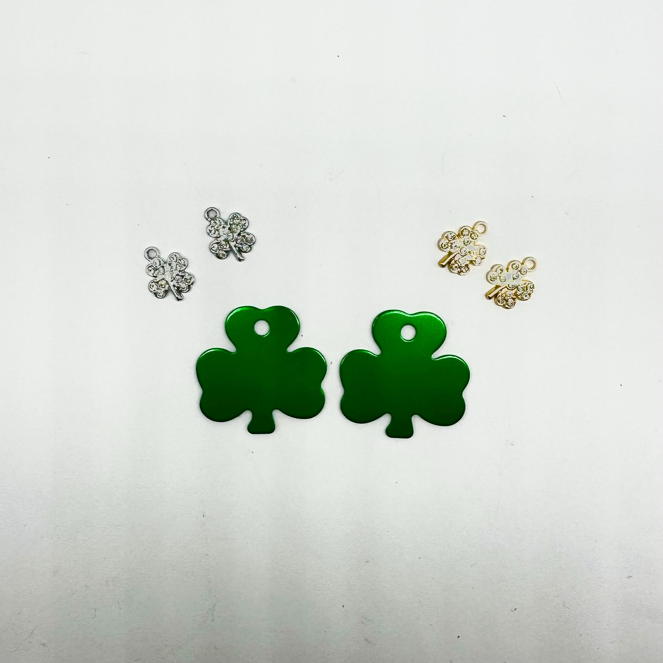 St. Patrick's Day Charms, Shamrock Charms, Silver Shamrock Charms, Fairy Charms, Green Shamrock Charms. Our charm/Hoolas come as pairs for Earring Design Options. Will fit our Snapback hoops. Allow for multiple designs by layering with other Hoolas.