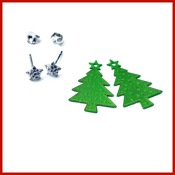 Sterling silver Star studs plus interchangeable christmas trees. wear with trees for the holidays and remove trees and wear anytime. great for both young and old at like.