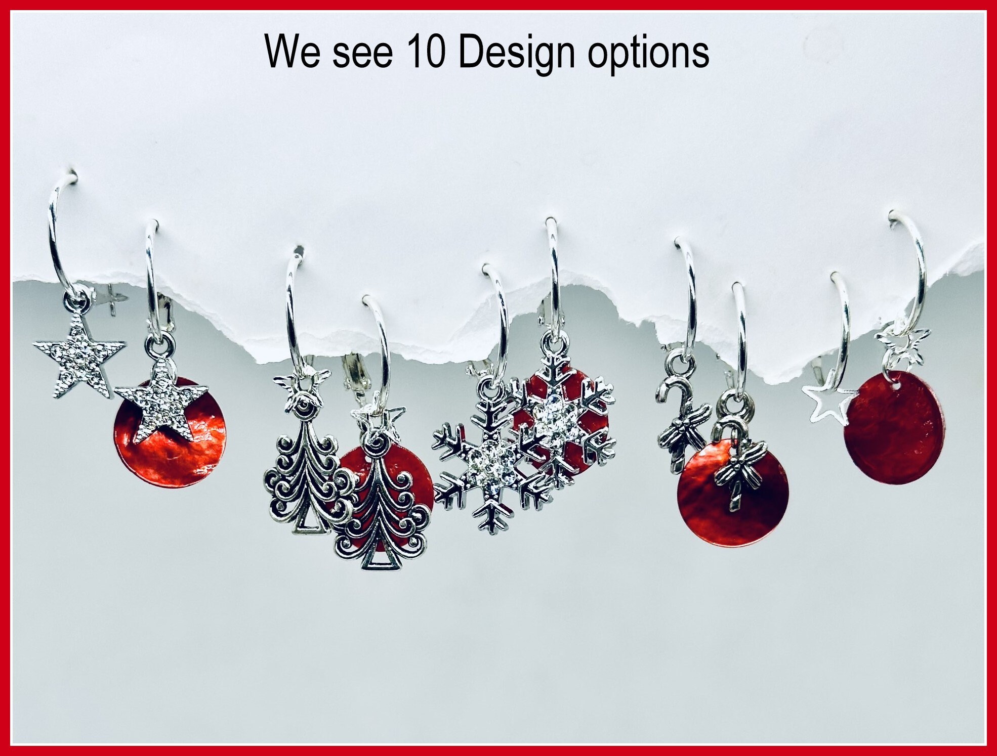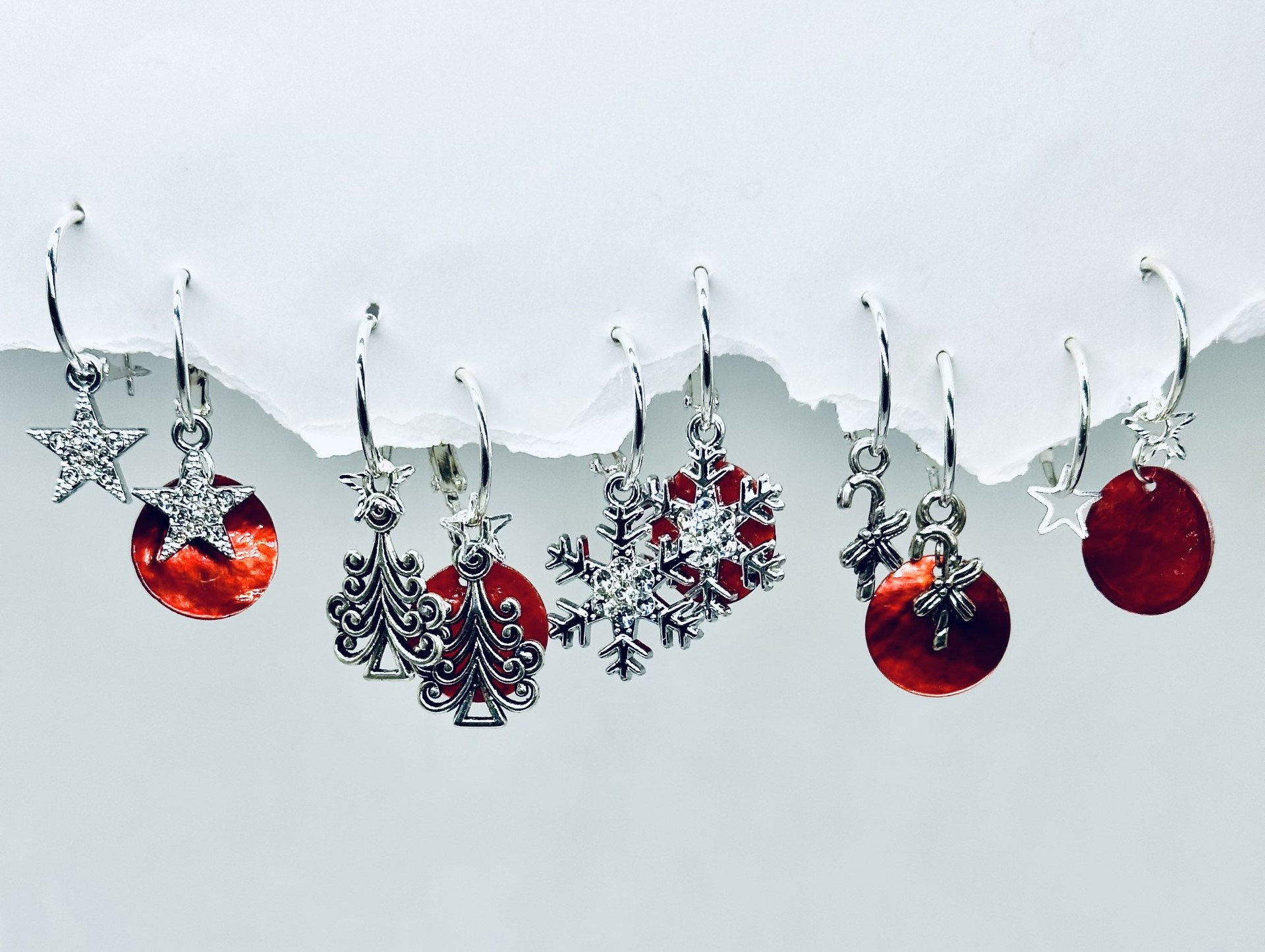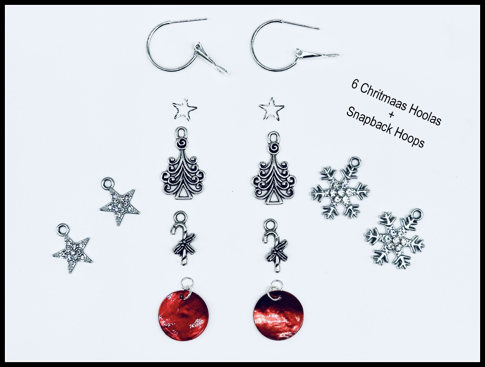Small Christmas Sparkle Earring Set, sparkle Christmas earring, interchangeable includes Sparkle Stars, Snowflakes, Christmas Trees w/mini Star, Candy Canes and Red Shells. Mix and match for so many pretty earring designs.