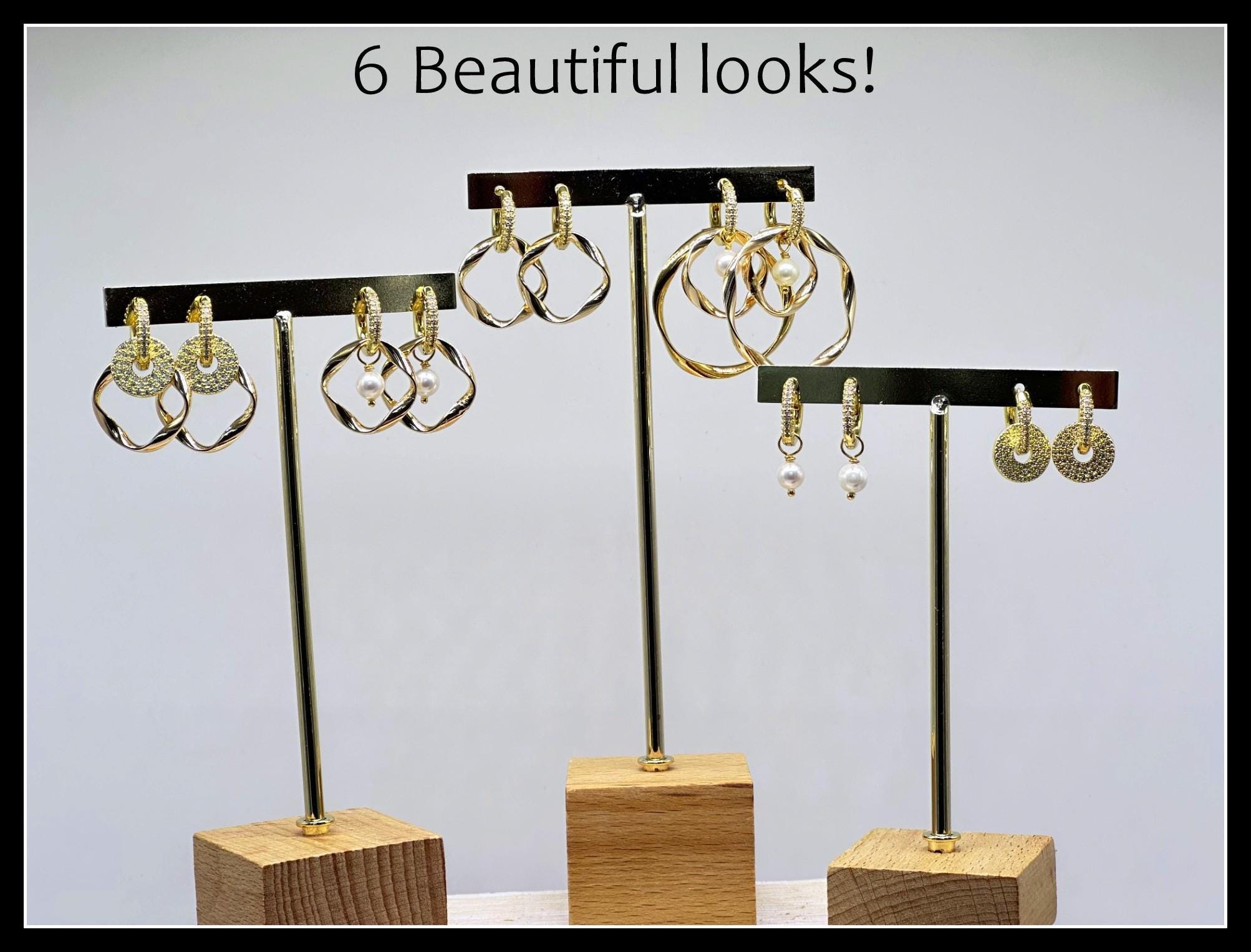 Set makes over 20 earring designs with reversible huggie hoops, (plain gold on 1 side and bling on the other)! Entitled "Vogue" because it is such a classic and timeless look. And so fun with so many design options. Comes with the FREE Vogue Purse Bag, making it the perfect gift.