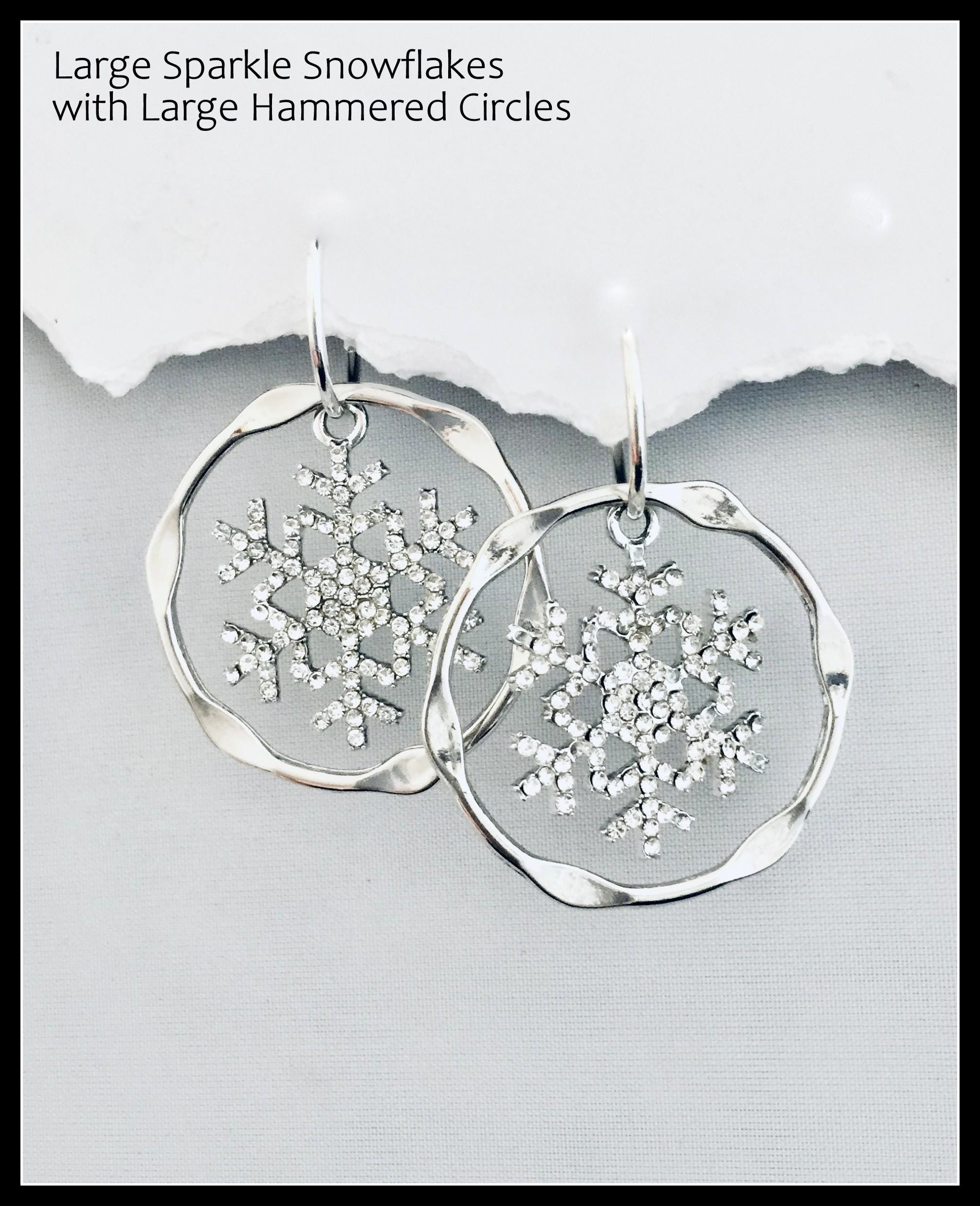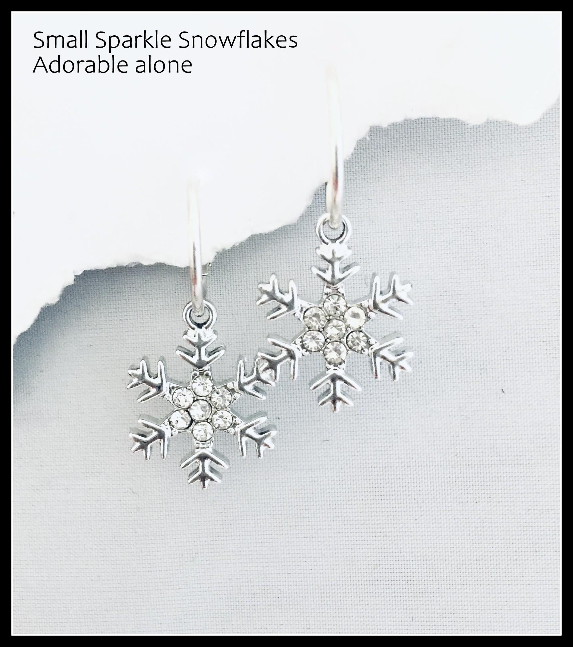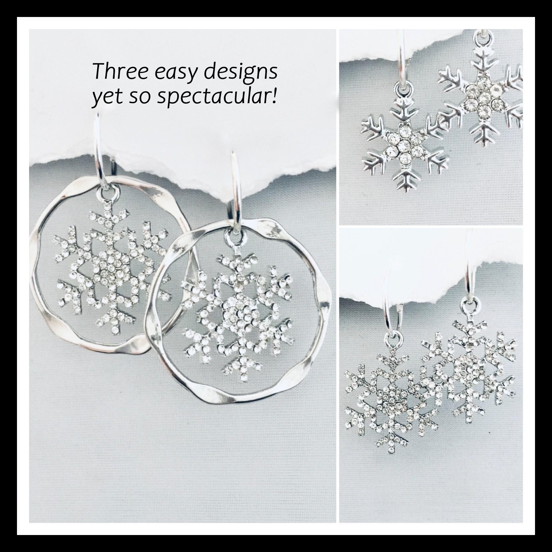 Christmas Holiday silver Earrings, holiday bling Earrings, Glitz earrings, Pearl Earrings, Snowflake Set. Sparkle snowflake charms, Pearl charms, mirrored, hammered circles and more. Each charm/Hoola fits on easy slide-on hoops to make many different earring designs. SEE ALSO SNOWFLAKE NECKLACE SET.