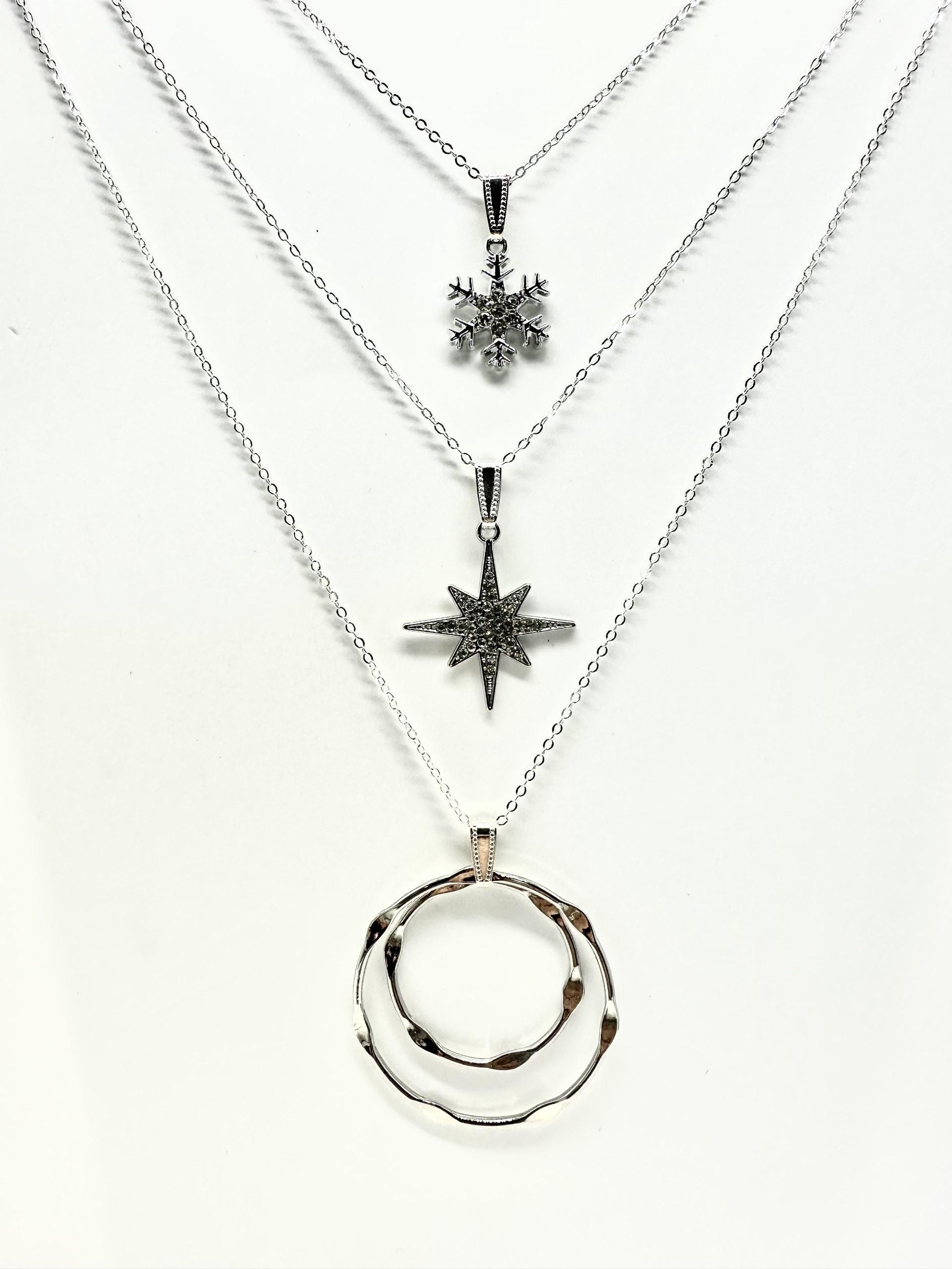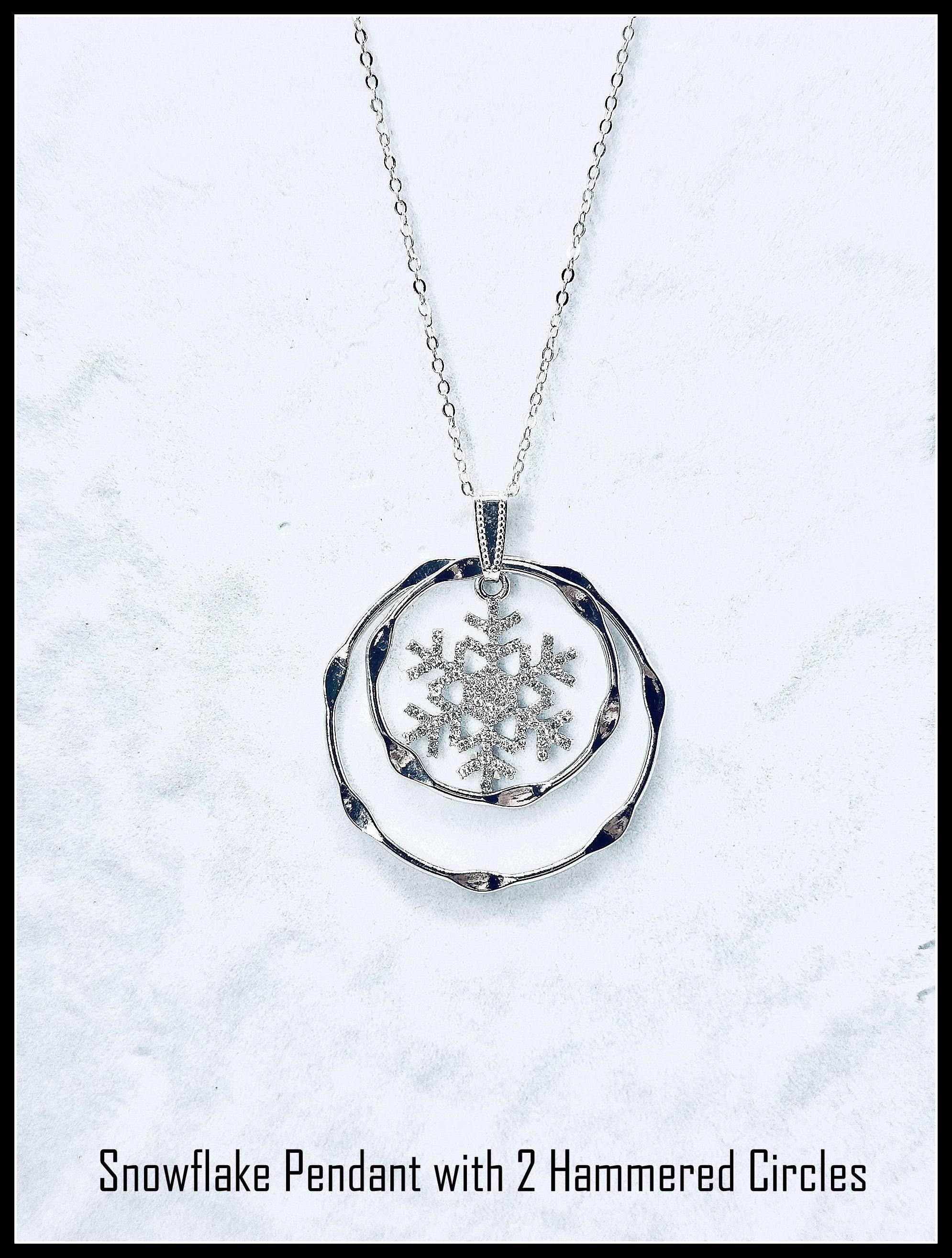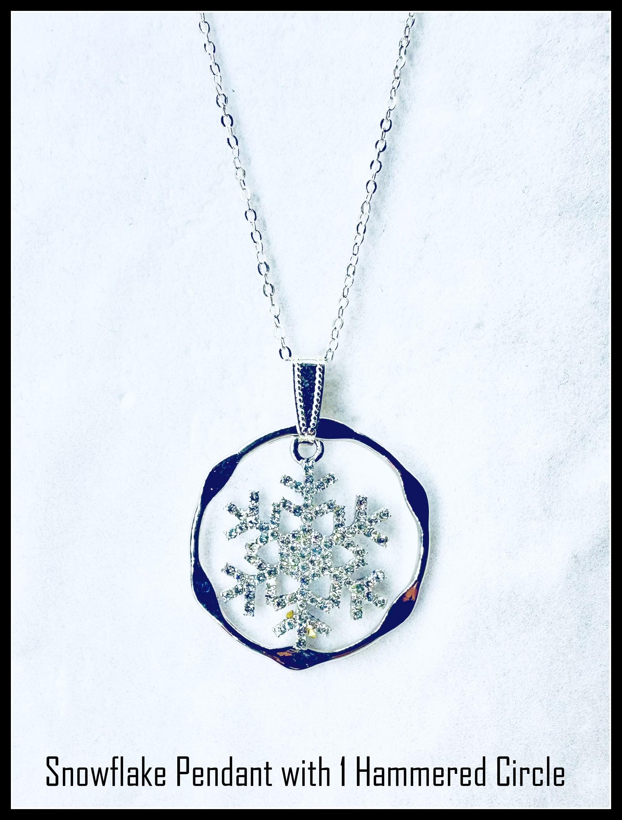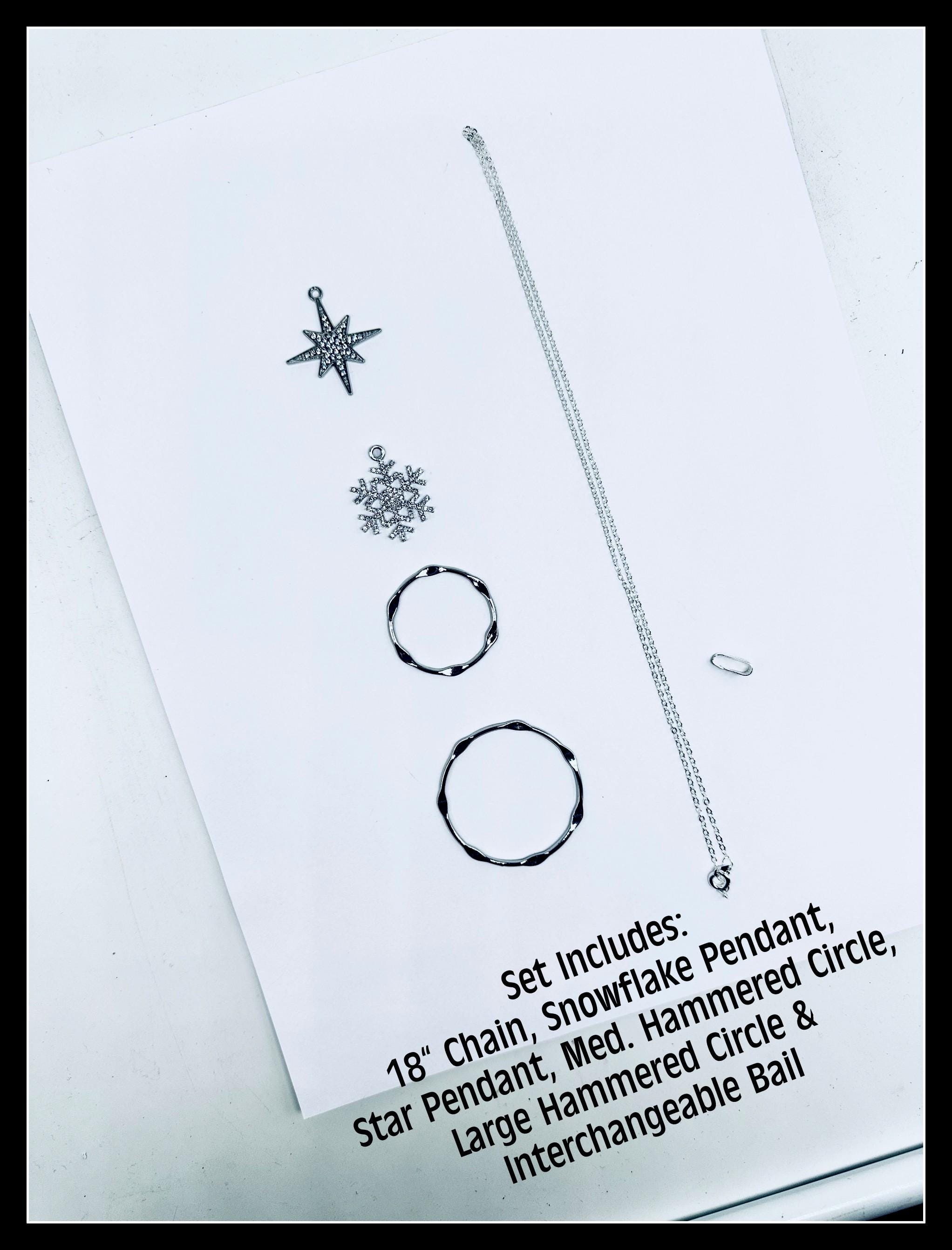 Interchangeable Holiday necklace, pendants slide on and off bail for multiple design options. Stars and Snowflakes for Holiday Season but wear hammered Circles alone or together for your every-day look! Slide