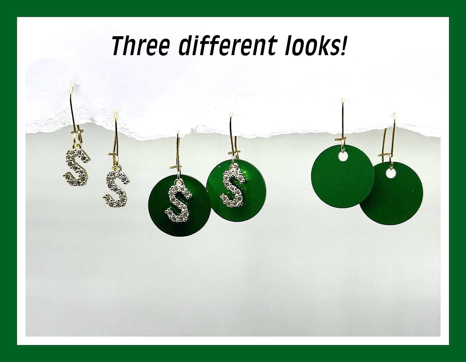 Interchangeable gold and green Hoola charms allowing for multiple design options. Support your team by wearing bling gold and green discs together or have a more elegant look by wearing the gold bling S's alone. So much fun and truly "Designed by you". Set includes: