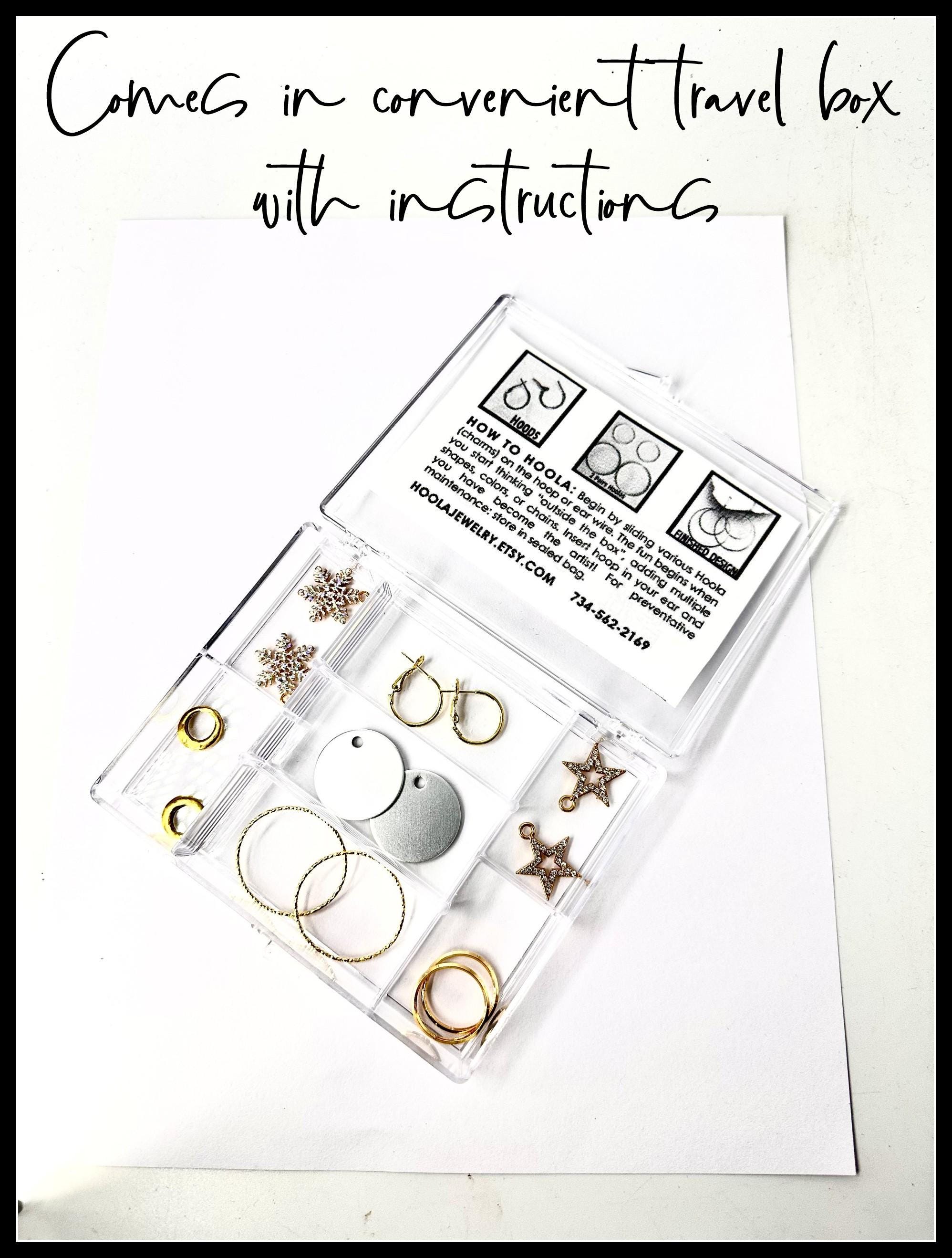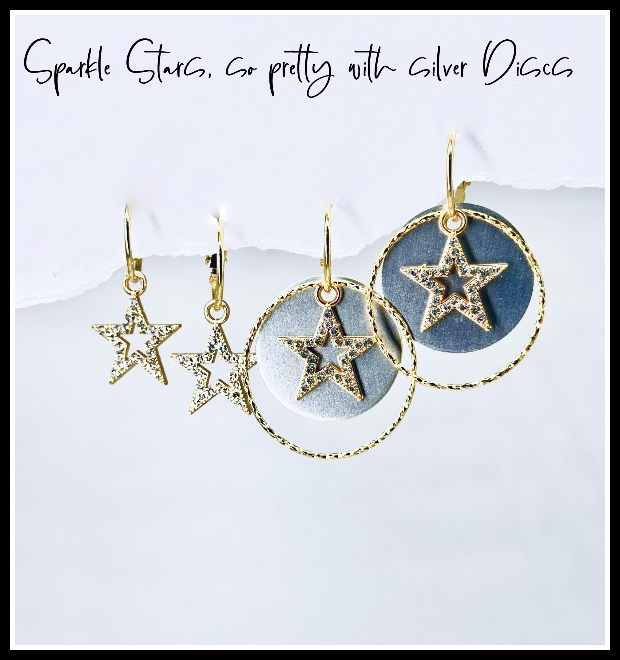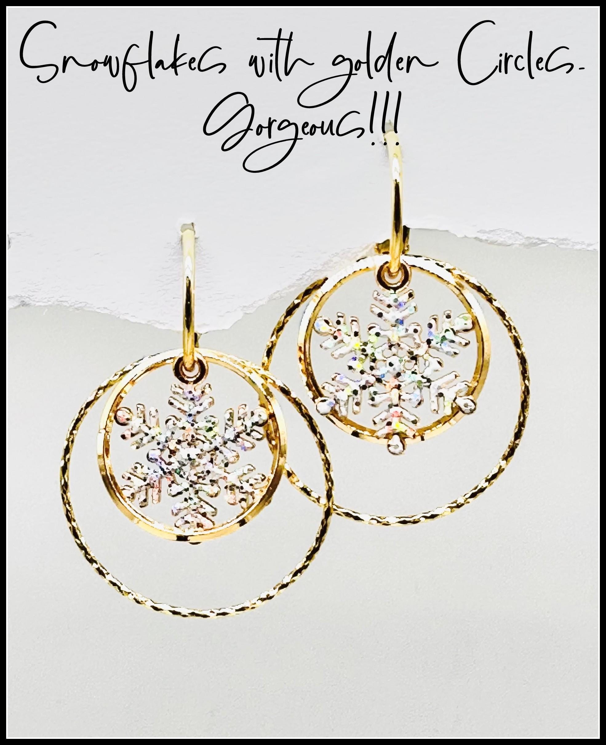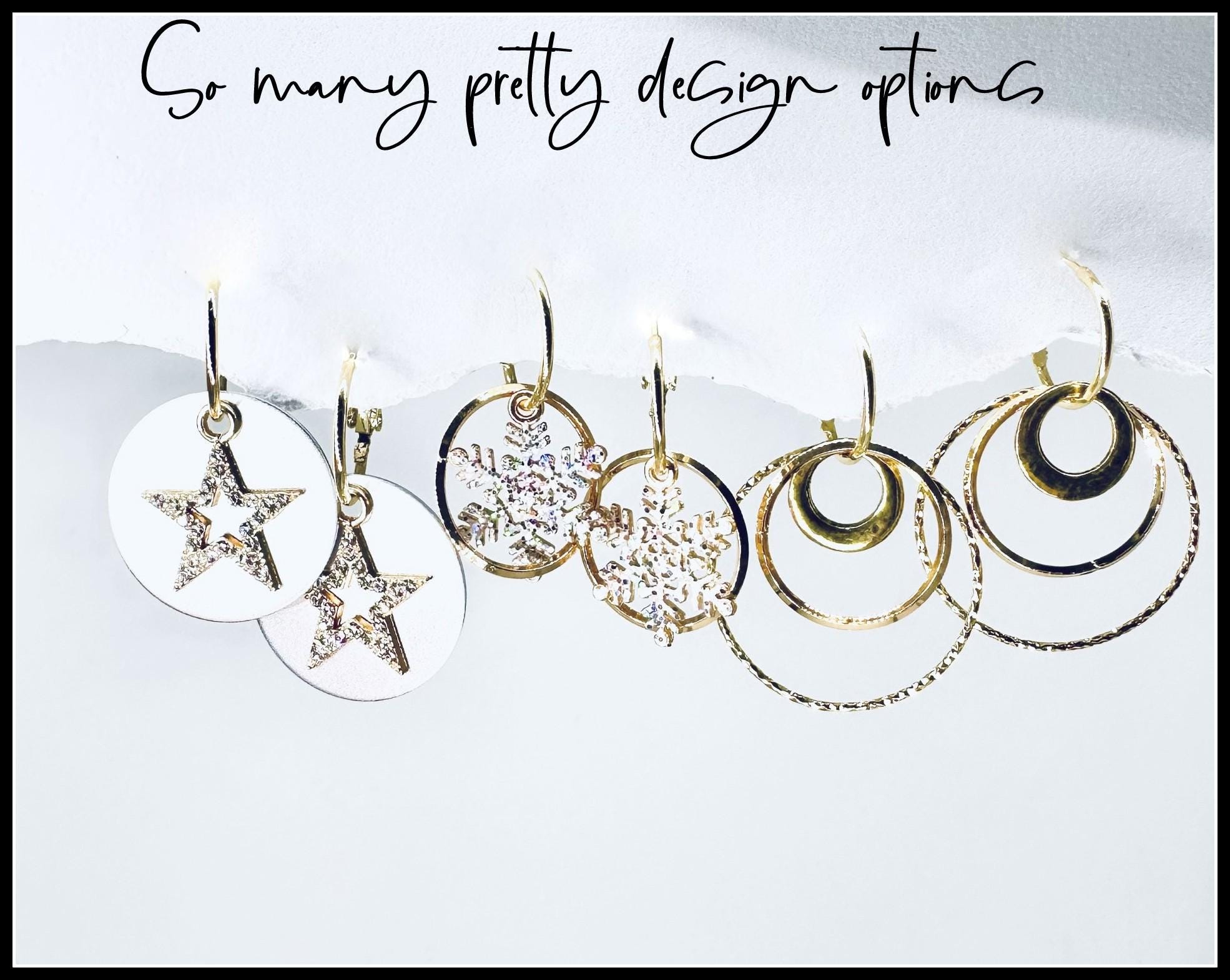 Interchangeable Holiday earring set: Gold sparkle Snowflakes, Gold Stars, Golden Circles of 3 sizes allow for multiple design options. So sparky and beautiful. Perfect for gift giving. Call them Christmas, Winter or just plain gorgeous!!!
