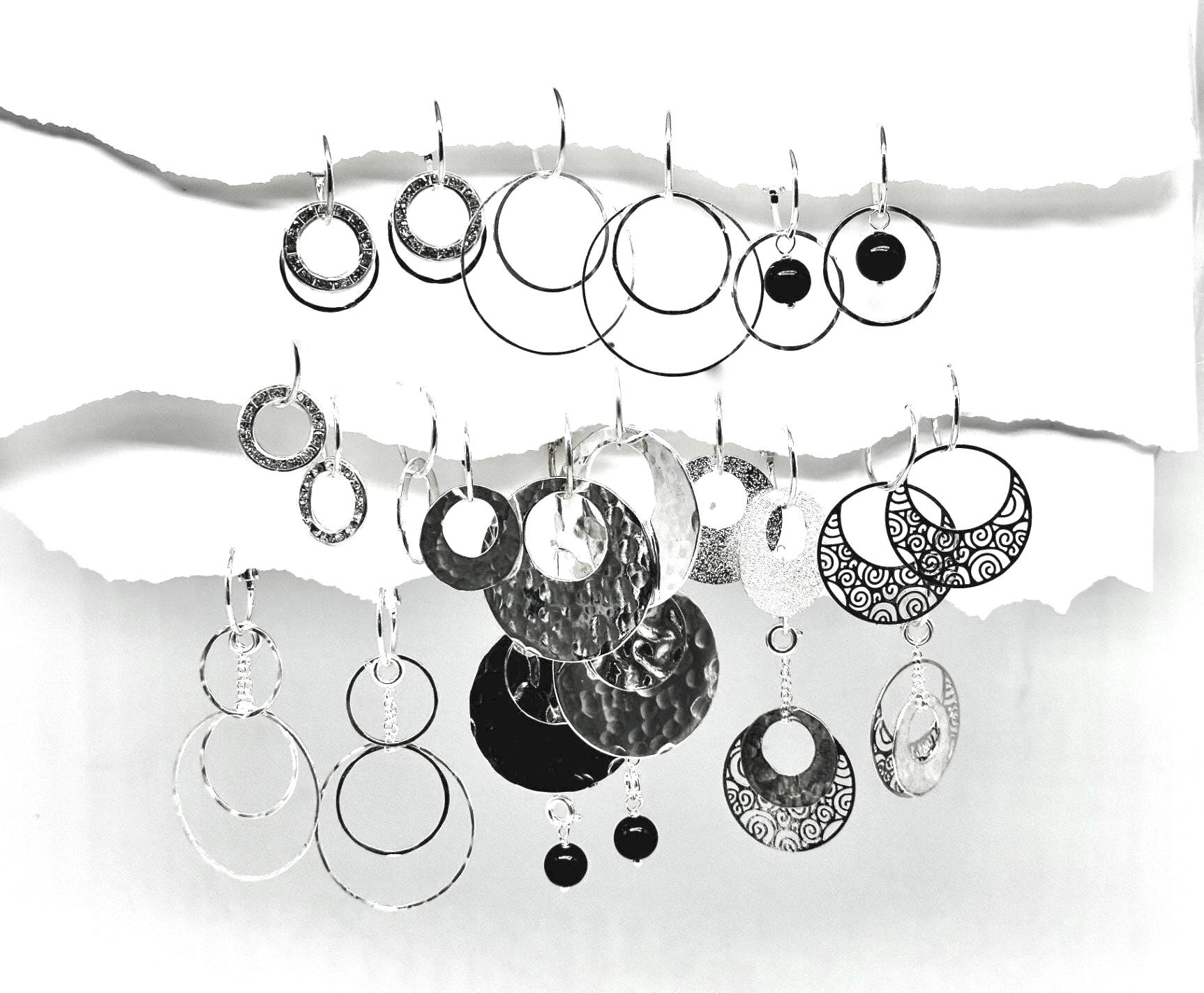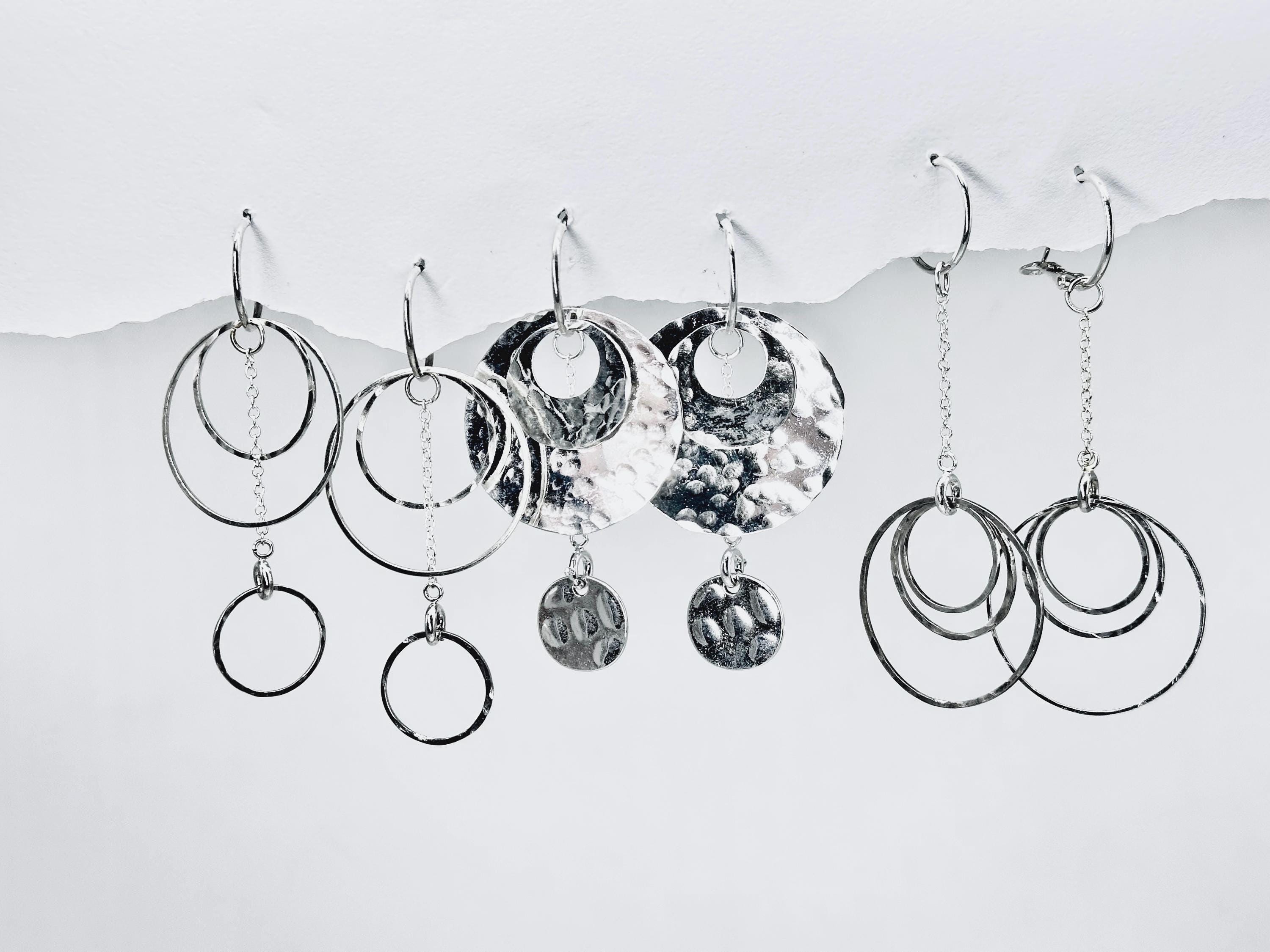Silver Dangle Earrings, Drop Earrings, New Improved Silver shine Earrings, Gift for Her, Interchangeable, Statement Earrings, Over 300 earring design options, our Best selling earring set ever, Mix and match the various circles and sizes to create your own personal look. Use the included chain to lengthen your design and wrap it through a Hoola charm for a slight dangle, or drop it on the hoop and you have a long, lean look.