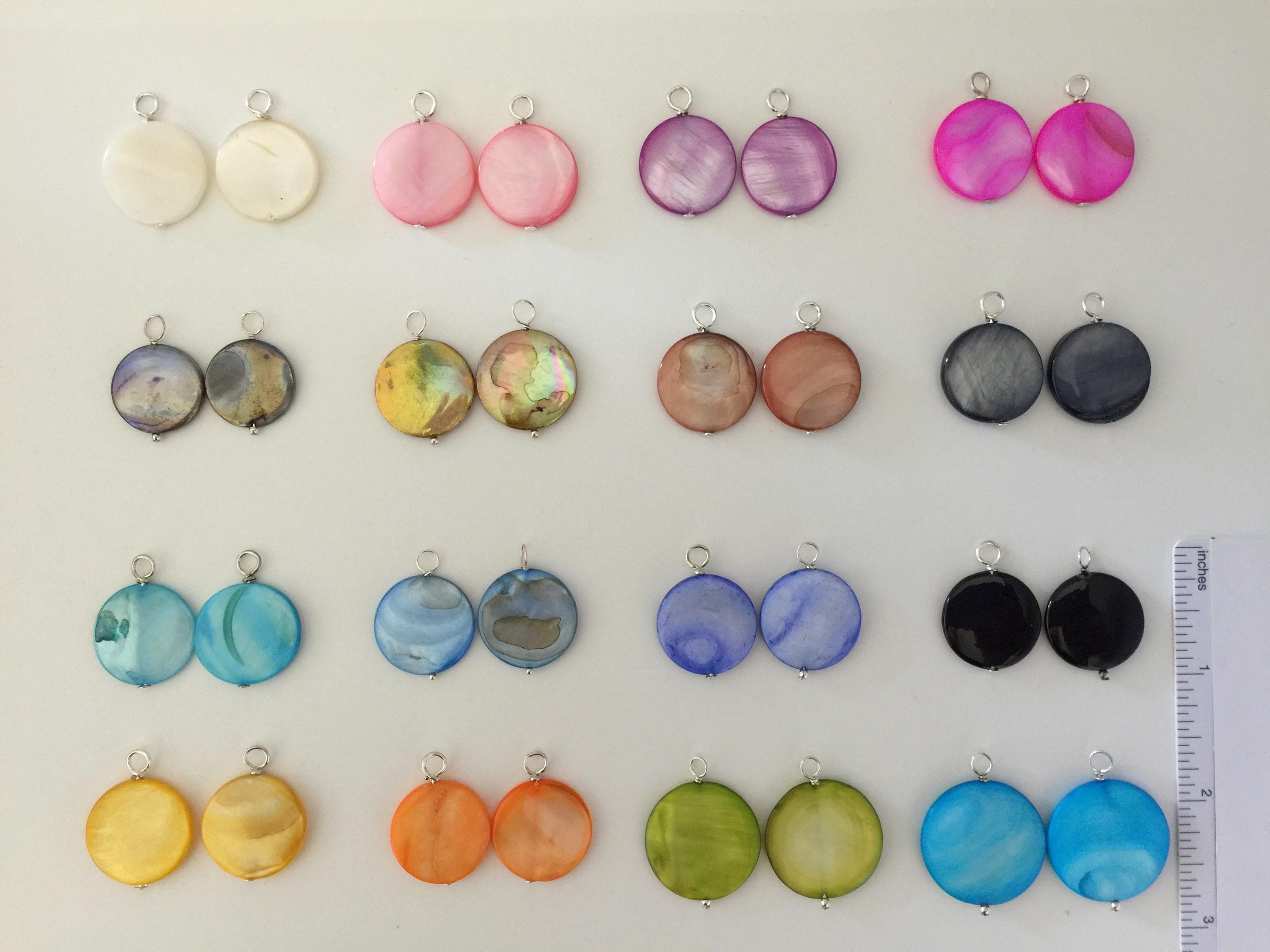Shell charms, large shells, natural shelll charms, Silver charms, add a touch of color to every earring design. They are made from natural shells and are slightly smaller than a quarter. These are wonderful add ons to all of our other boxed sets.