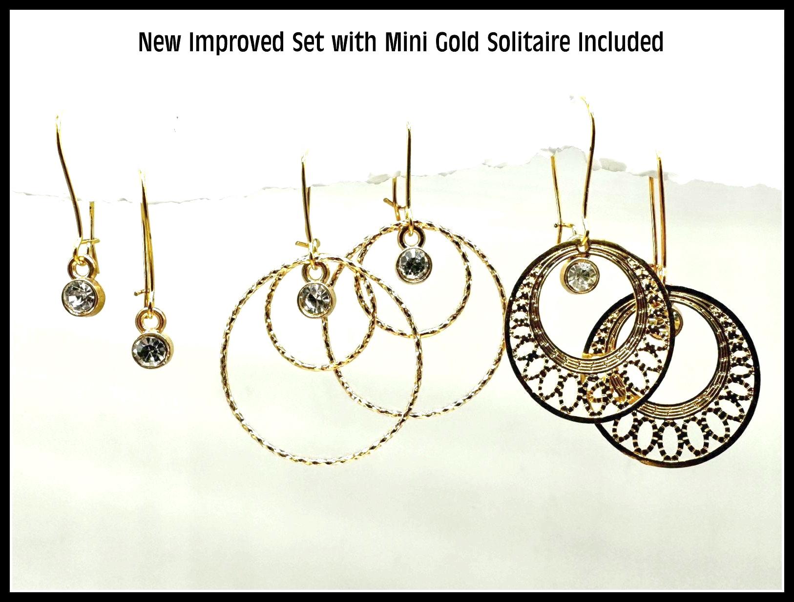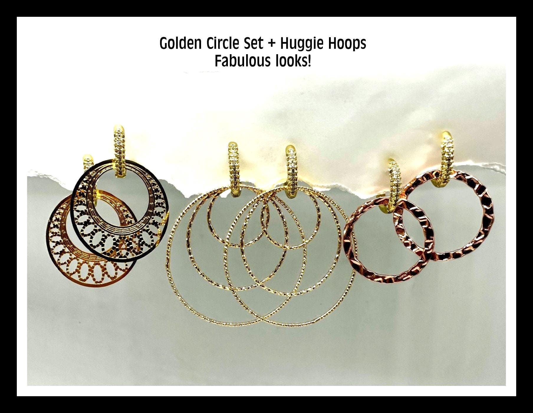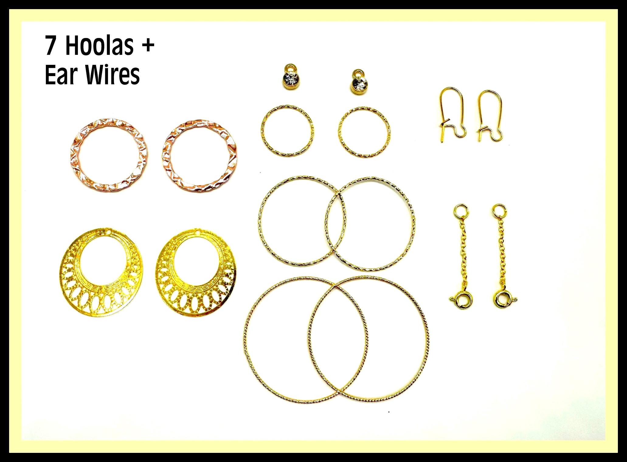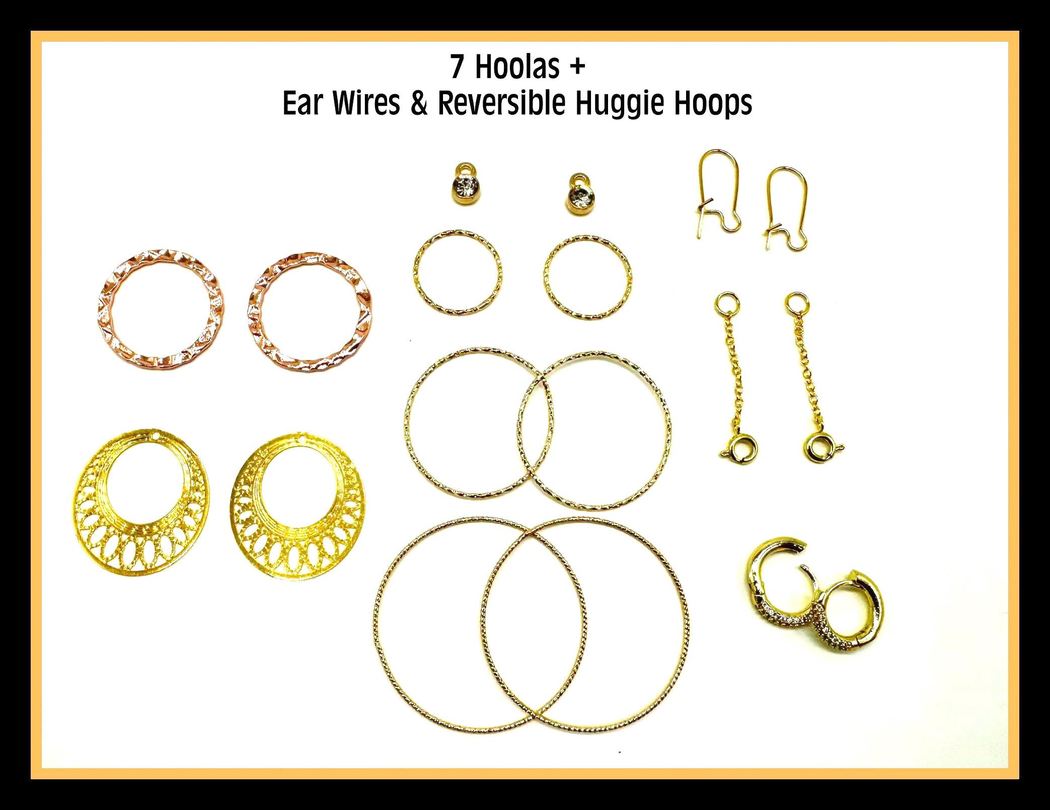 7 Golden Hoolas and 1 pr Earwires, or add interchangeable Huggie hoops for even more options.