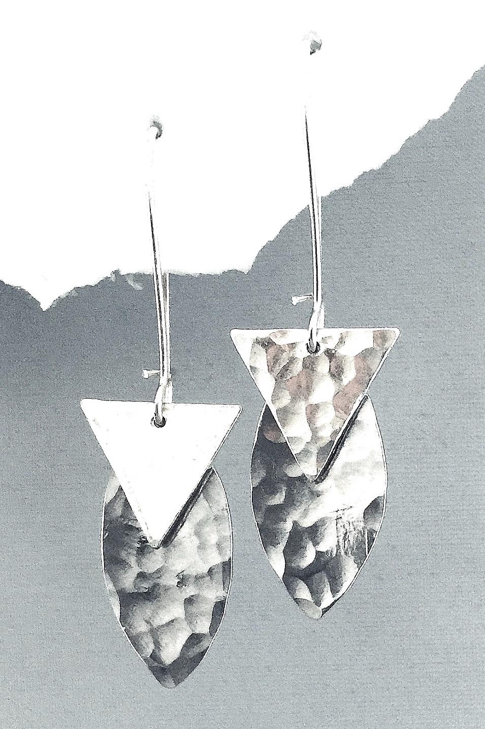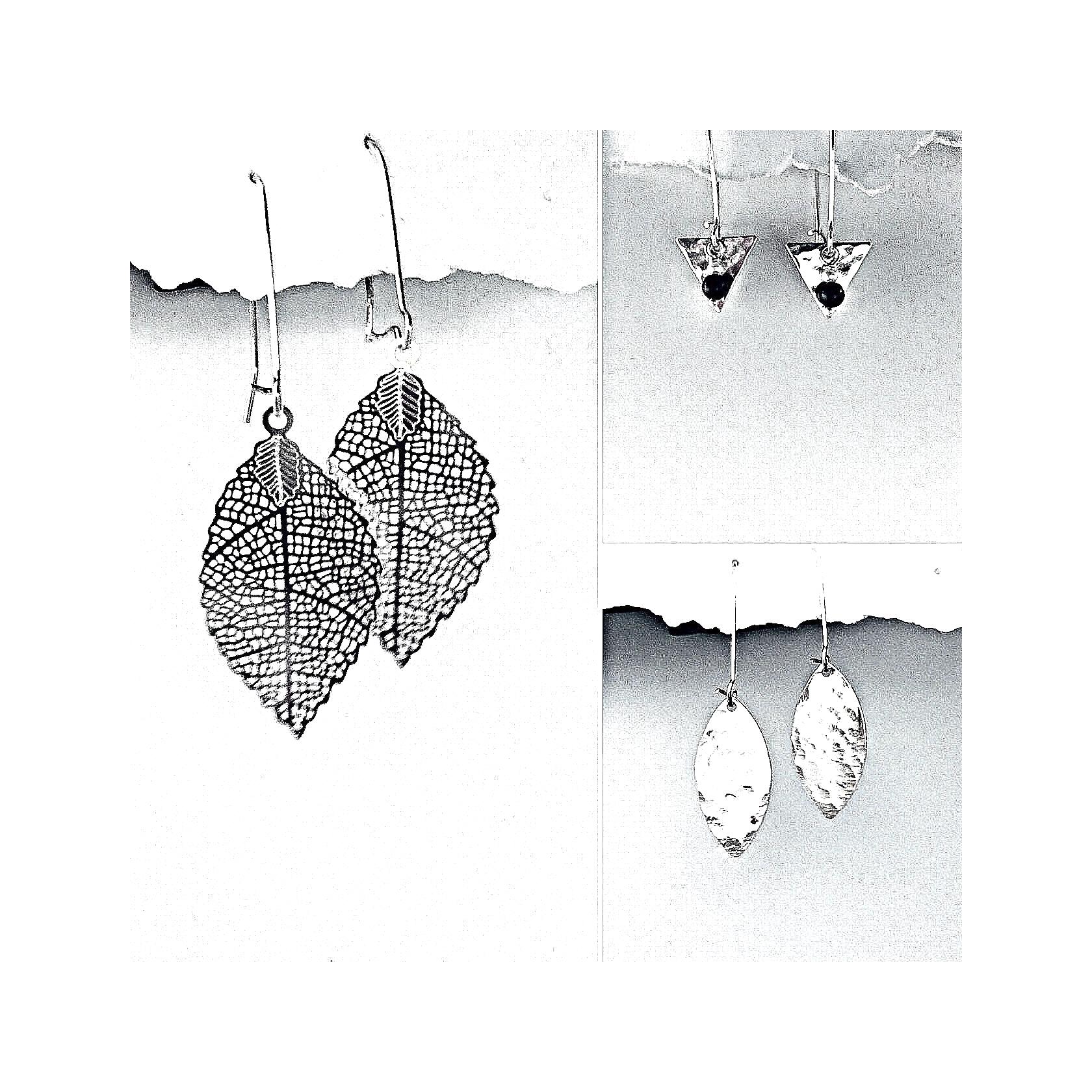 3 prs. hand hammered Hoolas, triangle, teardrop and leaf