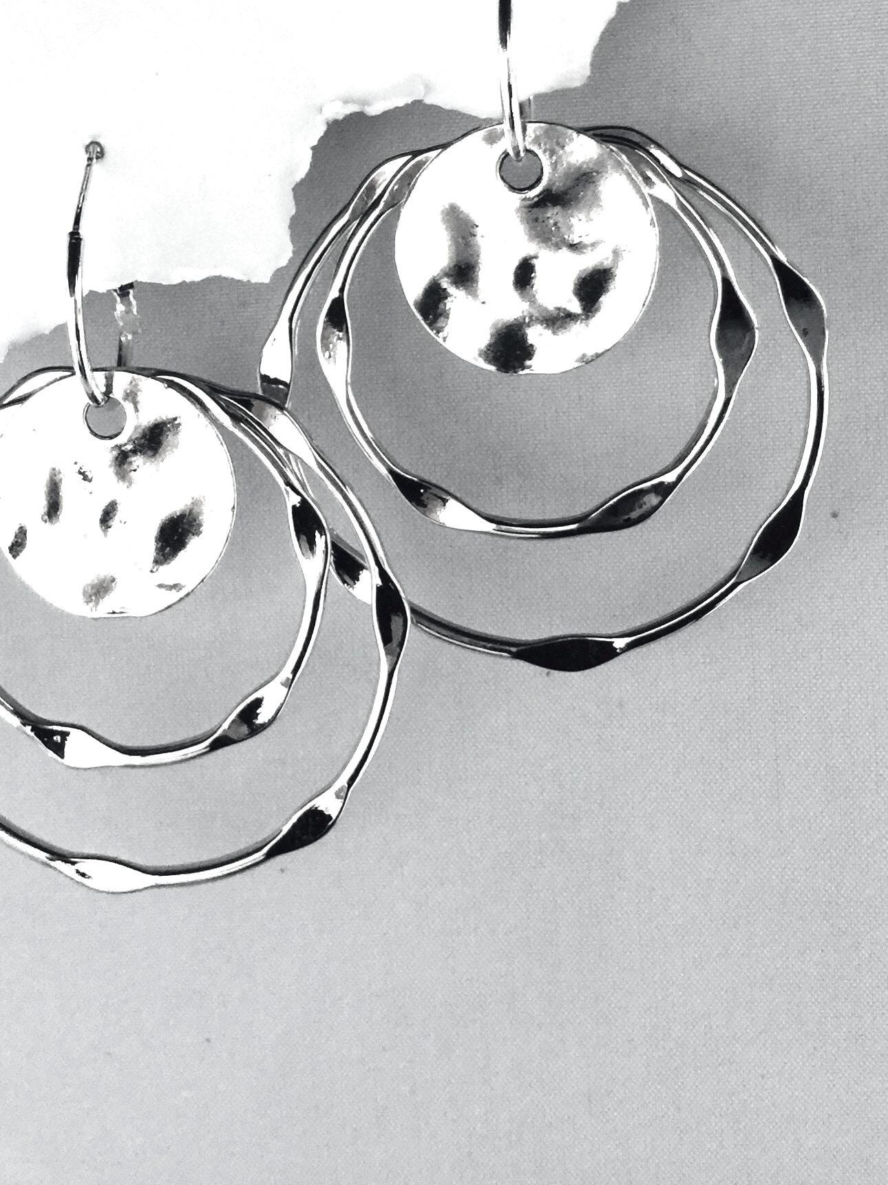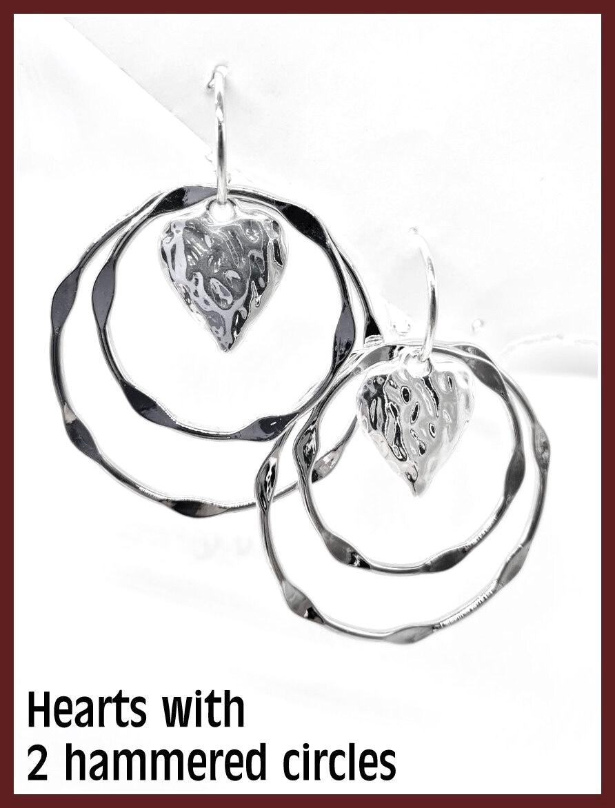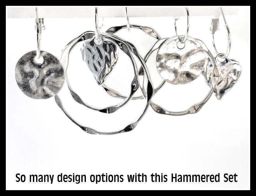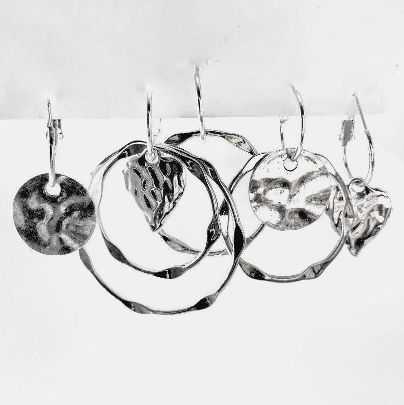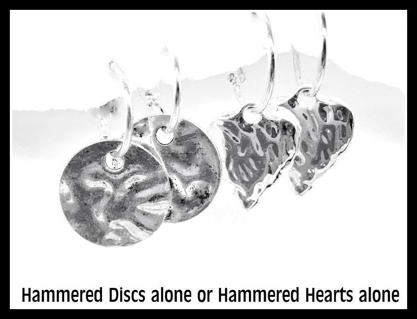 Valentines Earrings, Hammered Heart Silver Earrings Interchangeable, Hammered dangle Earrings, Large Hammered Earrings, Slver Earring Set, Multiple earring design options by intermixing circles, Discs and Hearts . Set includes: