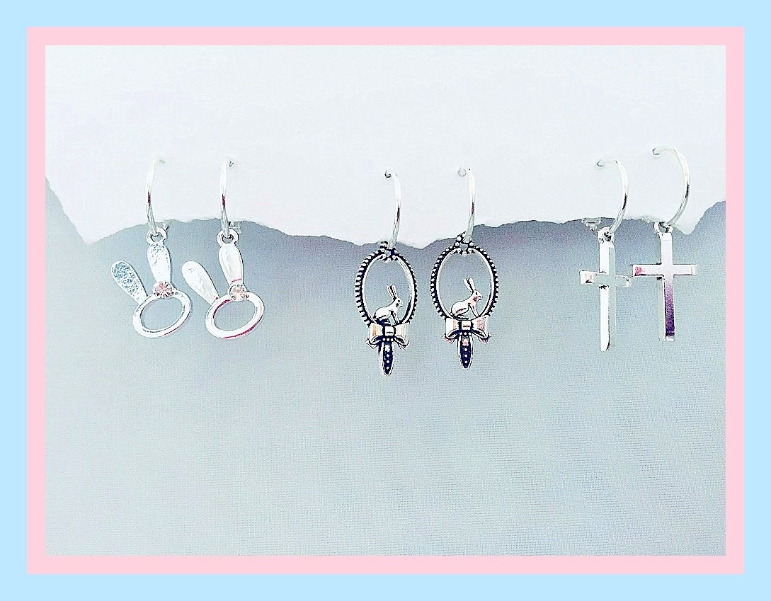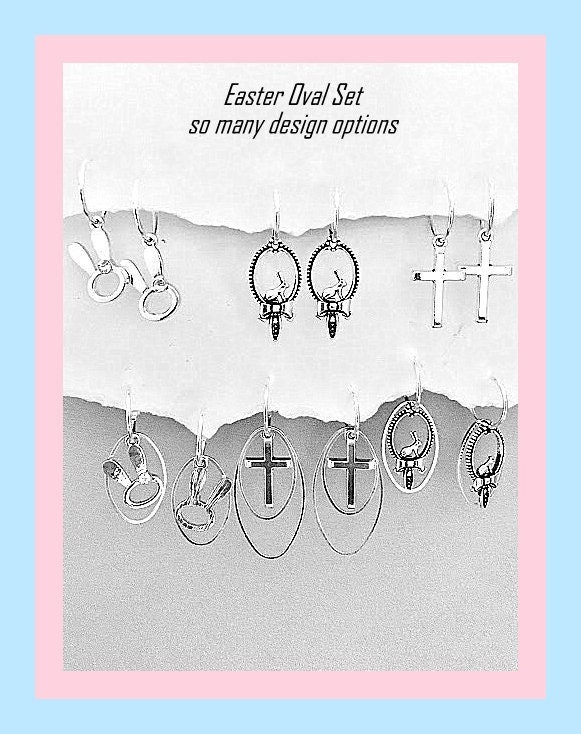 Easter Earrings, Children's Easter Earrings, children's Easter Gift Design your own with Bunny ears, Bunny with bow, Cross and Ovals. Over 12 earring designs.